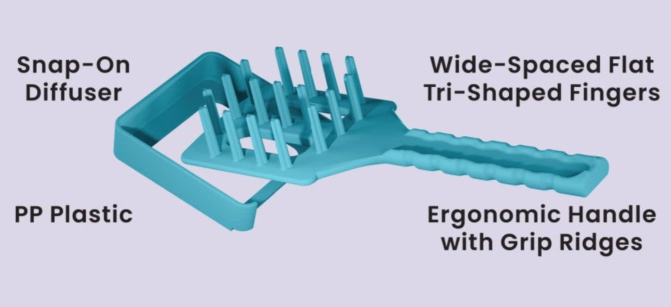 The patented 2-in-1 Detangling Hairbrush & Styling Tool Featuring a Custom Snap-On Styling Diffuser