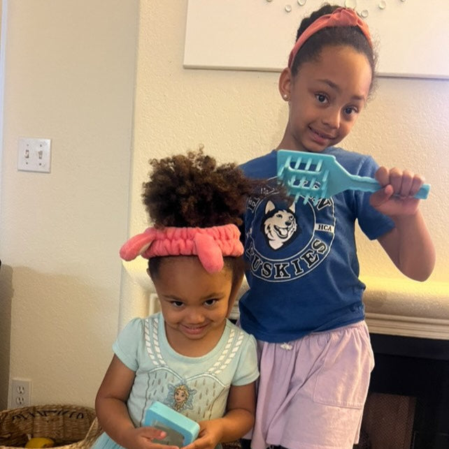 Detangle wet or dry hair using light pressure to reduce breakage & maintain natural curls.